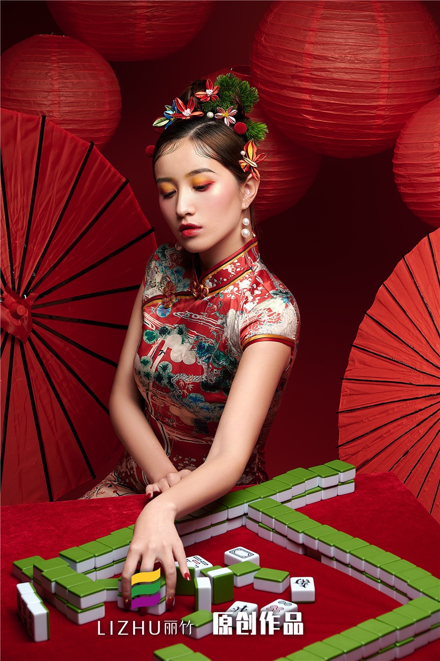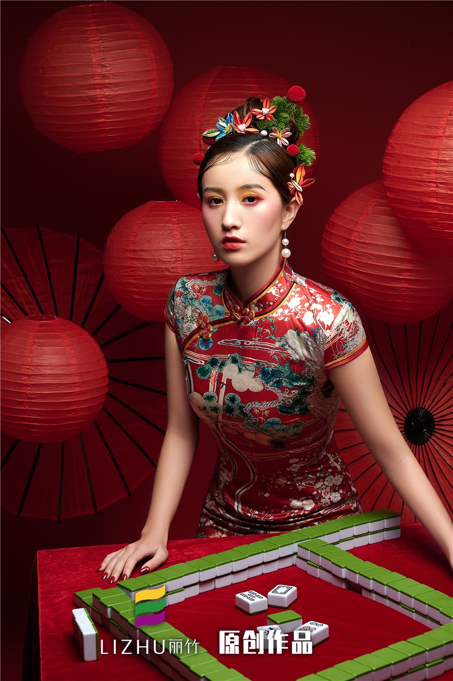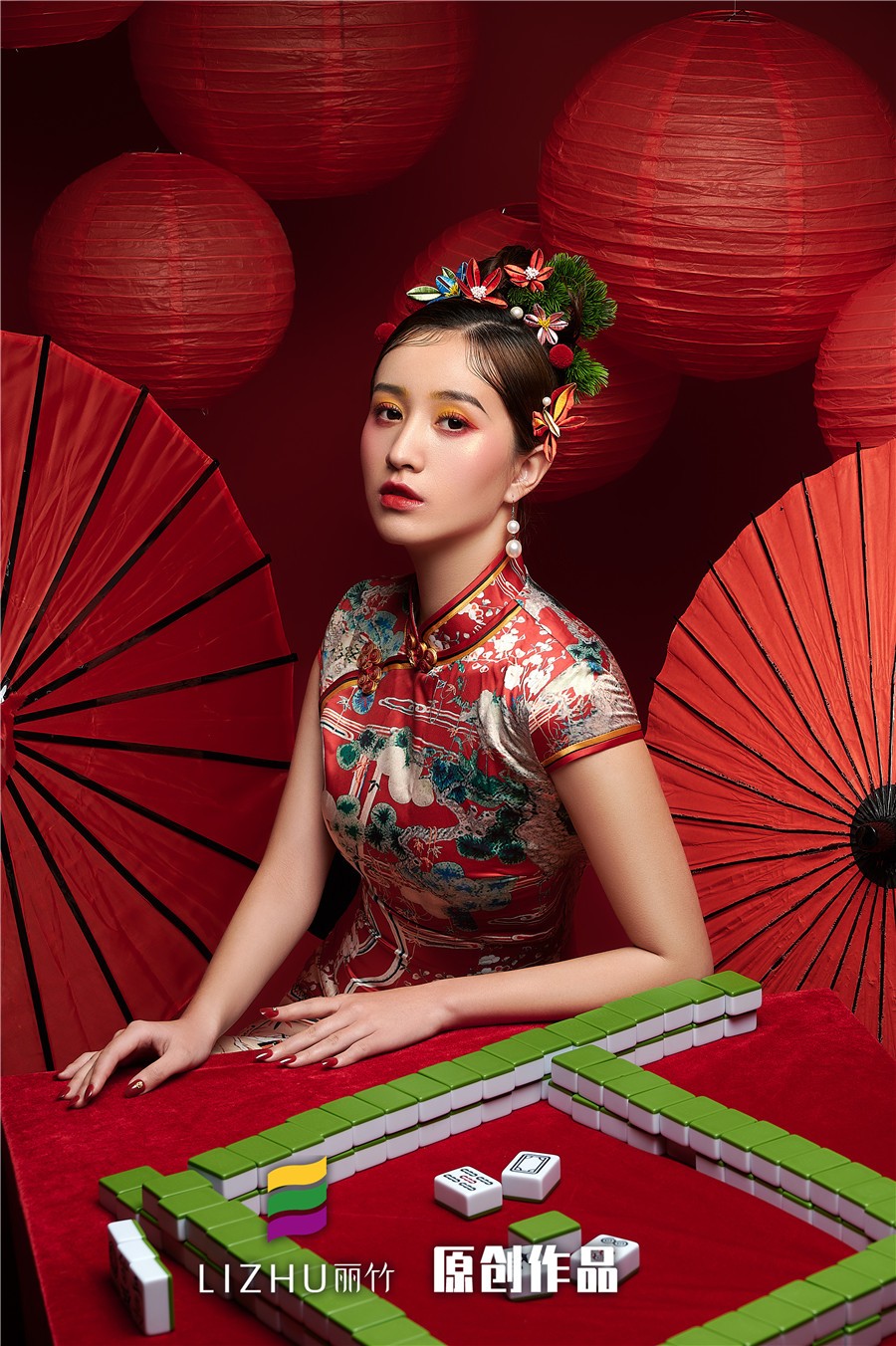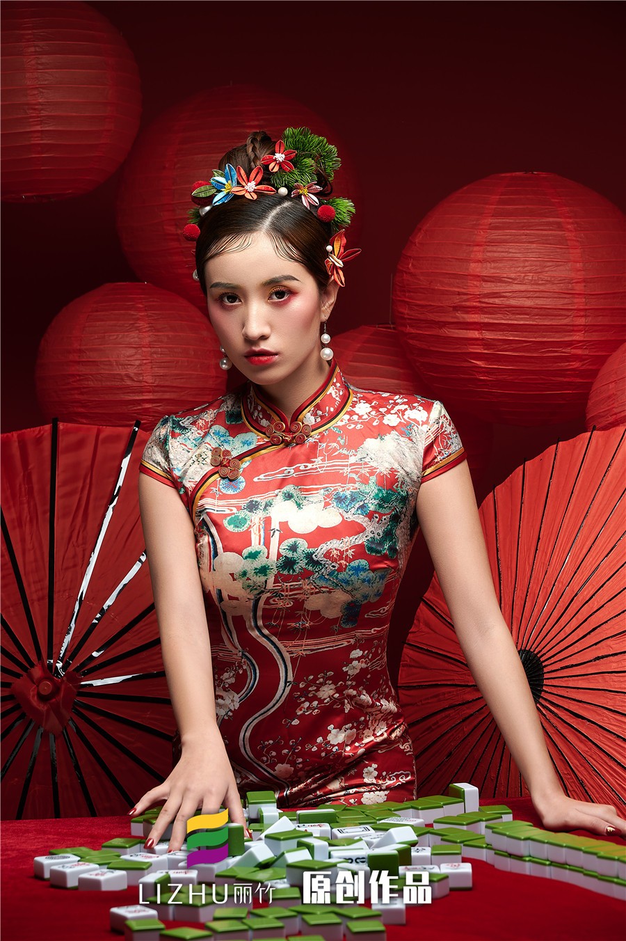 南寧化妝學校(麗竹學校)彩妝作品---精致國風旗袍造型:復古手推波與旗袍搭配,風靡了民國時期的整個上海灘,以流暢的線條、圓潤飽滿的美感,給人帶來了嫵媚的女人味。