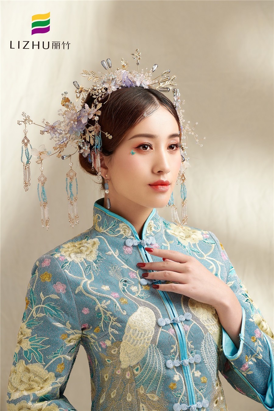 廣西彩妝培訓(xùn)(麗竹彩妝培訓(xùn)班)作品---藍(lán)色秀禾新娘造型:簡(jiǎn)潔優(yōu)雅的盤發(fā),配上秀麗柔美的妝容,滿眼柔情溢出眼角眉梢,極具優(yōu)雅端莊大方之余,更加顯得姿態(tài)婀娜多姿。