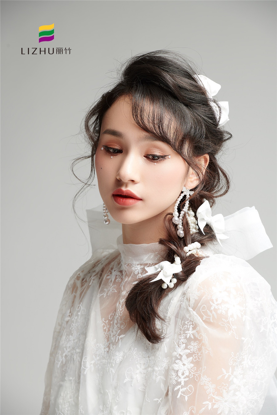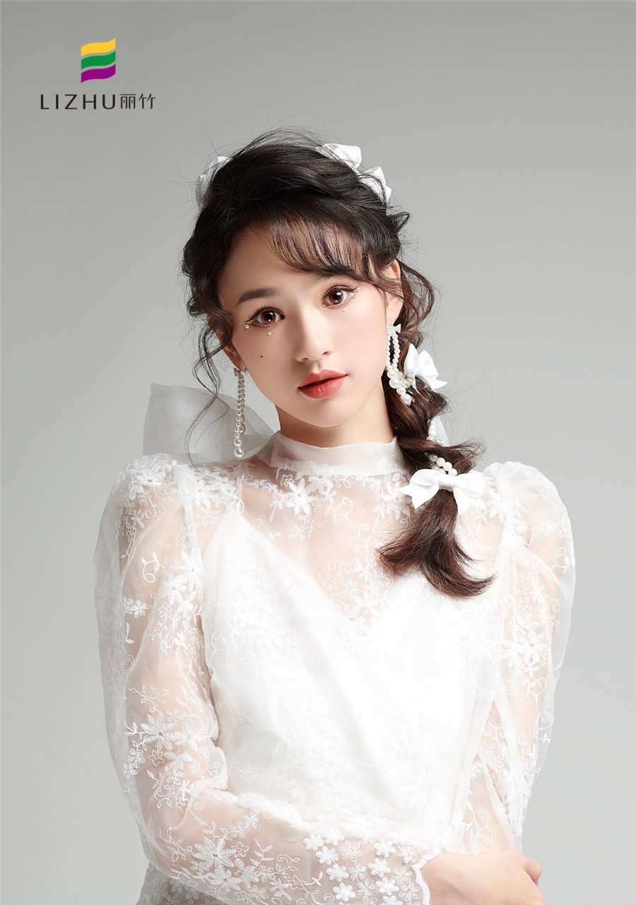 廣西化妝培訓(xùn)學(xué)校(麗竹化妝學(xué)校)---甜美時(shí)尚新娘造型:簡(jiǎn)約的便面編發(fā),搭配優(yōu)雅的白色蝴蝶結(jié)點(diǎn)綴。素雅動(dòng)人,甜美優(yōu)雅,無(wú)須濃墨重彩,即可打造氣質(zhì)恬靜新娘。