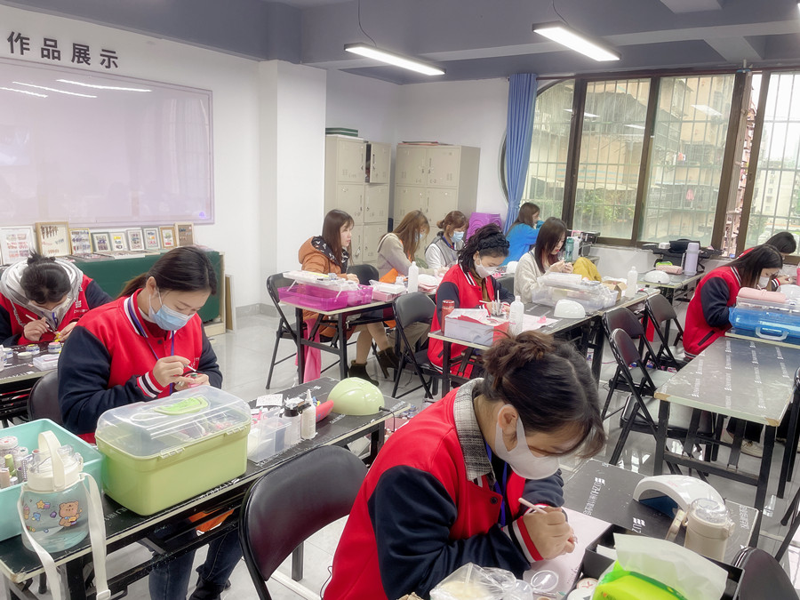 接下來,請(qǐng)跟隨南寧美甲造型培訓(xùn)學(xué)校的腳步,一起走進(jìn)南寧美甲進(jìn)修提升的教室里去看看同學(xué)們正在繪制的國(guó)風(fēng)美甲作品---青花·雅韻。