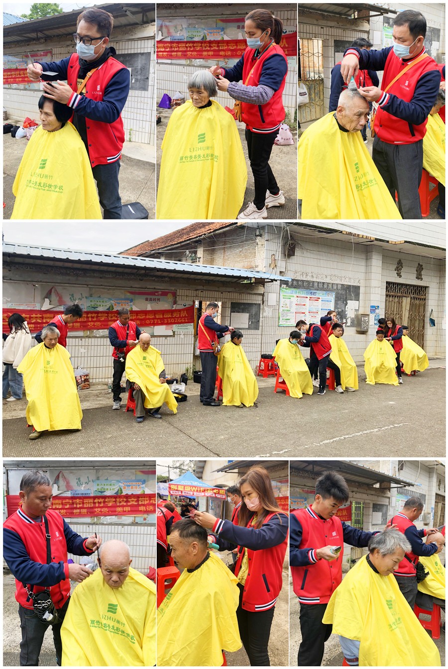 2023年12月18日,南寧美發(fā)培訓專業(yè)的同學們?yōu)榫用衩赓M理發(fā)