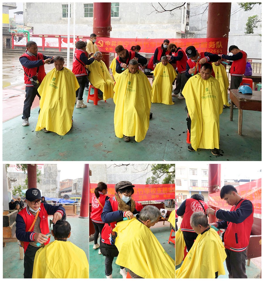 南寧美發(fā)實踐外出、南寧理發(fā)社會實踐:南寧美發(fā)學校排行前三的南寧美發(fā)職業(yè)技術(shù)學校-南寧美發(fā)培訓專業(yè)-麗竹美發(fā)學校志愿者服務隊立馬拿起理發(fā)工作,不顧嚴寒來到群眾身邊,為大家仔仔細細的進行理發(fā)活動。