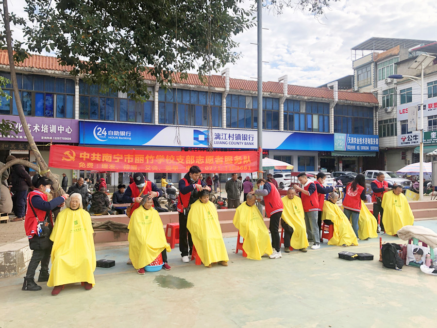 南寧美發(fā)社會實(shí)踐報告、南寧美發(fā)教學(xué)外出:霜凍籠罩在上空,呼呼刮來的冷風(fēng),連綿不斷的陰雨讓本就寒冷的氣溫變得更加刺骨難耐。但即便是在這樣的天氣下,南寧美發(fā)職校志愿者服務(wù)隊(duì)的同學(xué)們依舊走訪在各大周邊城鎮(zhèn),為群眾們進(jìn)行免費(fèi)理發(fā)服務(wù)。下面,就請跟著南寧美發(fā)造型培訓(xùn)(麗竹美發(fā)造型培訓(xùn))的鏡頭一起去看看同學(xué)們都去了哪些地方吧!