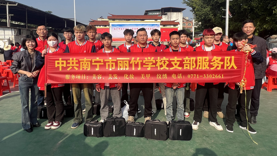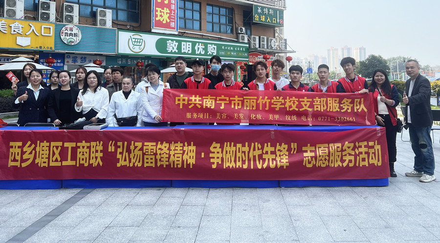 中共南寧市麗竹學校支部服務隊,積極響應在石埠街西明商業(yè)廣場舉行的南寧市西鄉(xiāng)塘區(qū)工商聯(lián)“弘揚雷鋒精神·爭做時代先鋒”活動,為群眾提供義剪服務。