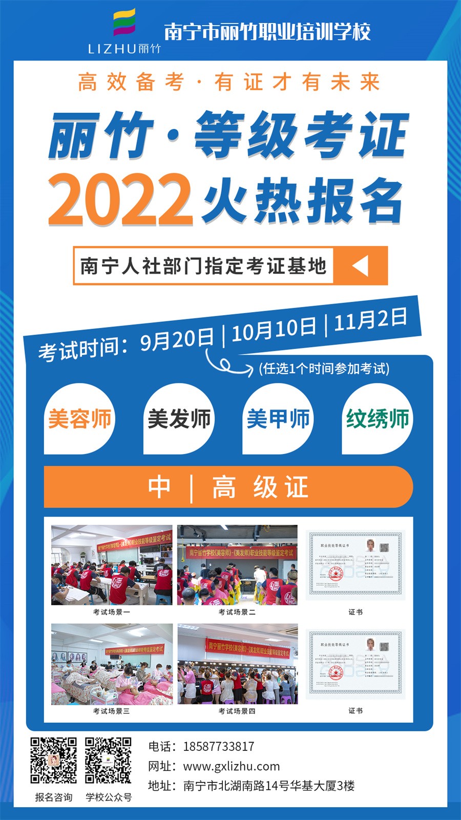 南寧美容美發(fā)化妝美甲學(xué)校分享:麗竹學(xué)校開學(xué)季,無論是你想要的優(yōu)惠學(xué)費,學(xué)時短但含金量高的黃金課程,亦或是想在廣西考美容美發(fā)師職業(yè)資格證書,或想知道廣西哪里可以美甲師證?亦或是想知道紋繡師證書怎么考……你需要的,麗竹學(xué)校通通都有!