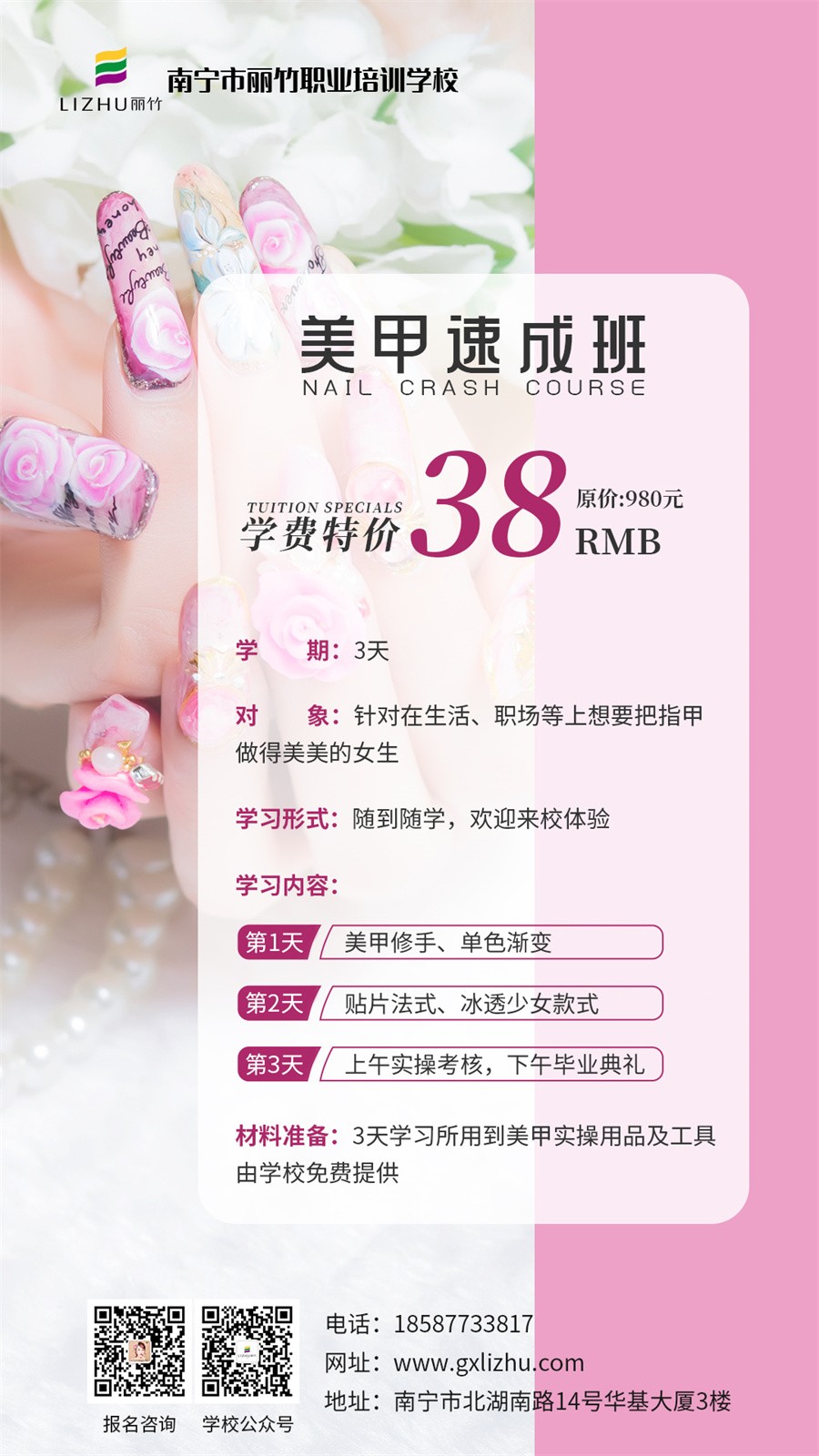 廣西美甲學(xué)校哪家便宜--->麗竹學(xué)校美甲速成班
